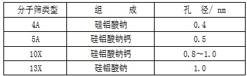 分子筛对极性分子和极化率大的分子作用力强,对极性分子和不饱和烃分子有较大的亲和力,如在4A 分子筛上吸附下列气体的能力依次加大: