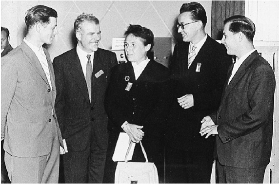 图 2 1959年Cremer在东德举行的气相色谱报告会时和当代四位著名色谱学专家的合影