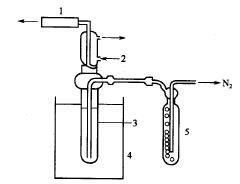 1—捕集管;2—冷却水;3—样品管;4—水浴;5—洗气瓶